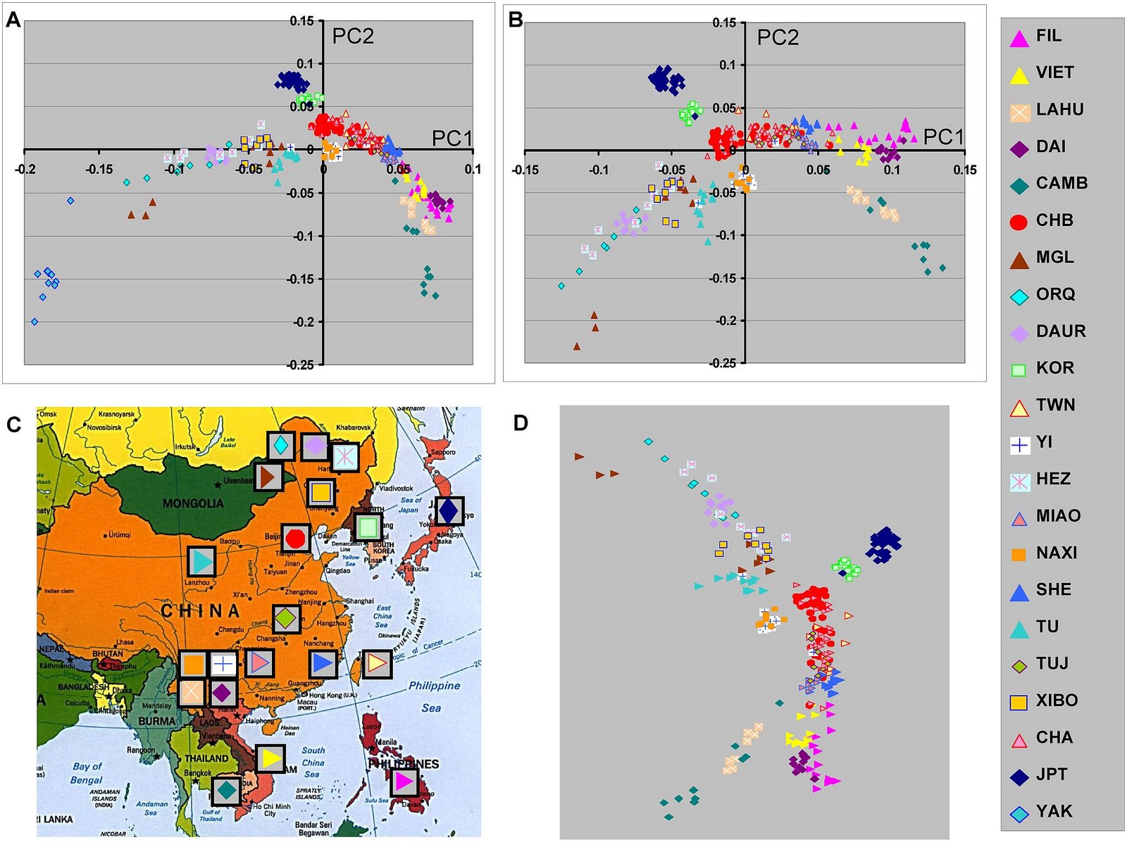 - It is sampling from individuals and classifying them within priori populations which they set up with linguistic, ethnic and geographic criteria. For each individual the same algorithm (the same one as the Rosenberg reference I gave earlier, which is STRUCTURE) is run between assumed possible number of options of ancestral populations 2 to 14.